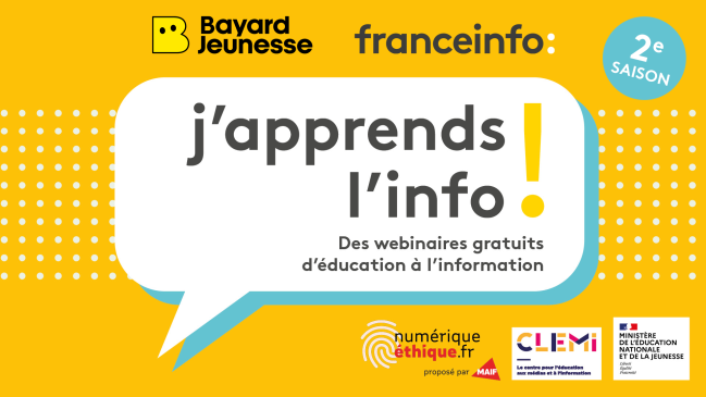 Après le succès de la première édition, franceinfo et Bayard Jeunesse poursuivent leur engagement dans l’éducation à l’information en lançant la 2e saison de l’opération « J’apprends l’info ! » destinée aux 7-15 ans, ont-ils annoncé jeudi 6 février. Le coup d’envoi sera donné le jeudi 20 mars avec des webinaires à suivre en présentiel, à la Maison de la radio et de la musique et en streaming. Suivra tout au long de l’année, une offre de webinaires à suivre avec les élèves en streaming interactif et en replay grâce à des kits pédagogiques mis à disposition sur franceinfo.fr pour approfondir et continuer à travailler en classe.